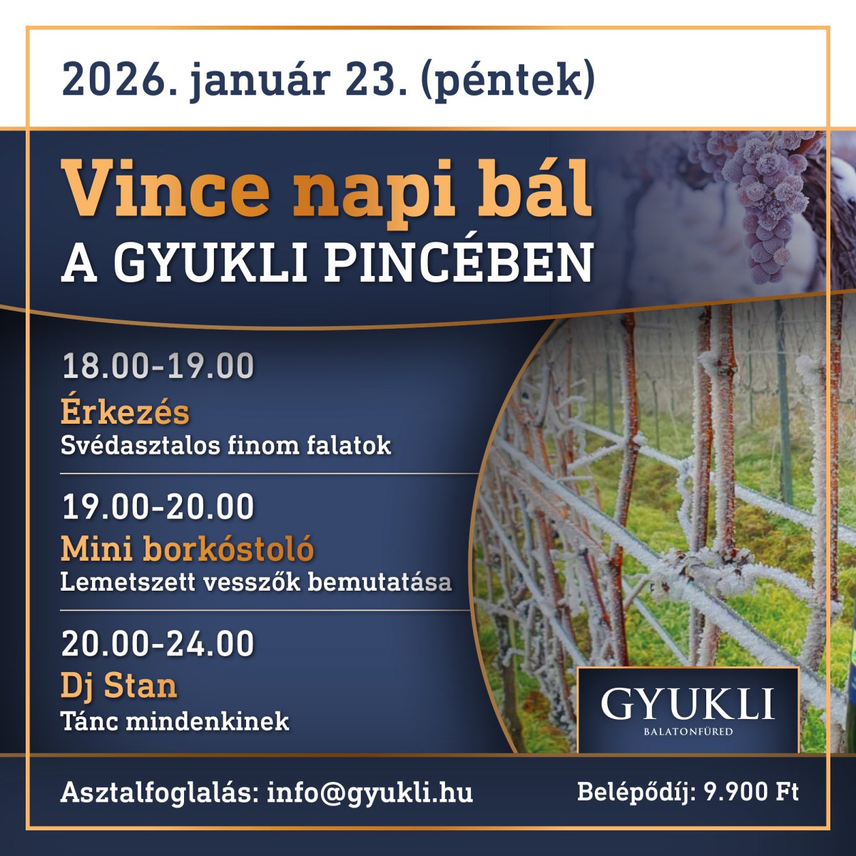 Ünnepeljetek velünk január 23-án pénteken a borteraszon! A korlátozott létszám miatt asztalfoglalás szükséges az info@gyukli.hu címen.